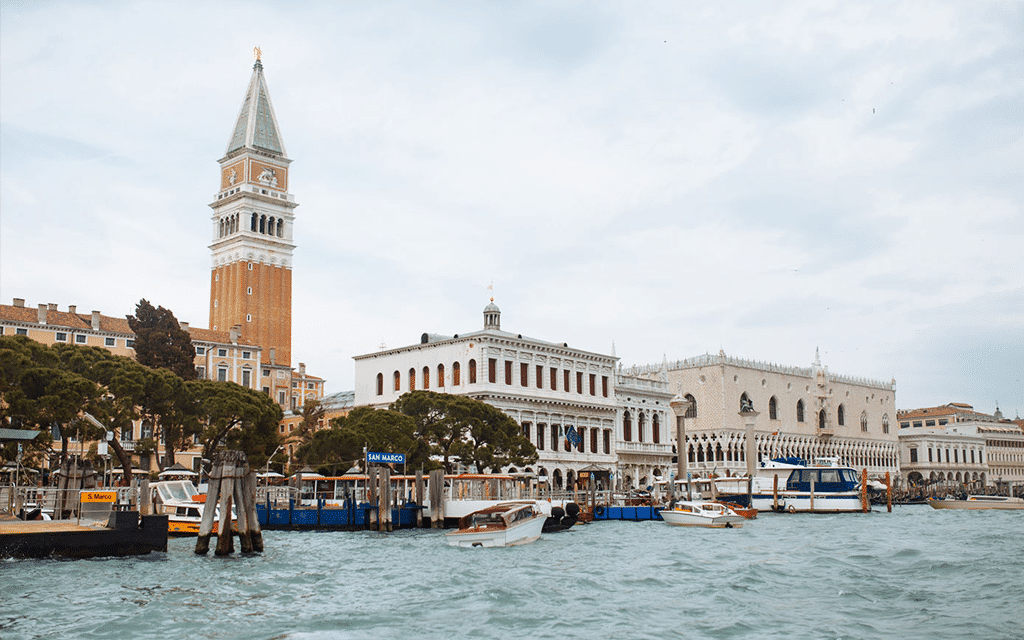 Start the day with a gondola ride along the Grand Canal, enjoying the iconic sights of Venice. Continue to visit the Rialto Bridge, Piazza San Marco, St. Mark’s Basilica, St. Mark’s Bell Tower, and spend the night in Venice.